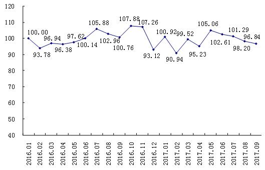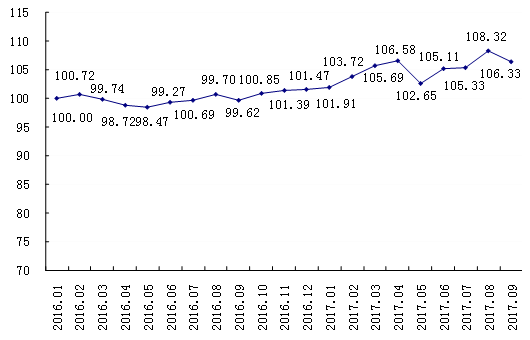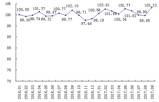 图1 温岭泵业出厂价格总指数(2017年9月)