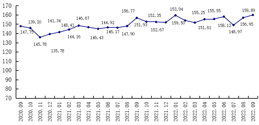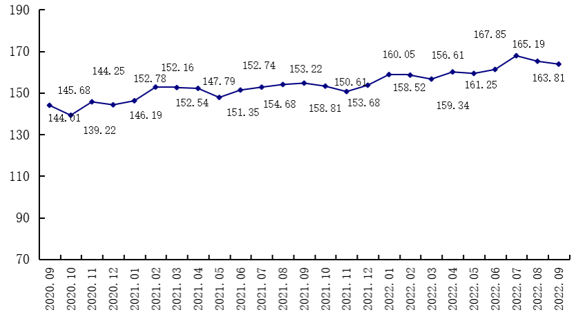 根据“温岭·中国泵业指数”项目组对相关泵业生产企业的监测数据,2022年9月泵业出厂价格指数为163.81点,环比下降了1.38点,同比上升了9.13点。具体数据可见图1。
