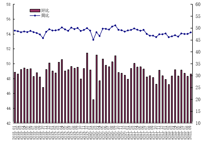 2、2022年9月,生产景气综合水平环比呈现上升态势、同比呈现上升态势,出口景气综合水平环比呈现上升态势、同比呈现上升态势。各分项指数均位于荣枯线附近。从预期指数来看,未来可能会出现平稳的景气程度。